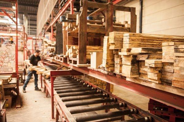 Primul pas din procesul nostru de productie include pregatirea si taierea busteanului pentru a obtine elementele paletului: scandurile si calupii (picioarele) acestuia. Acest prim pas cuprinde dupa caz: